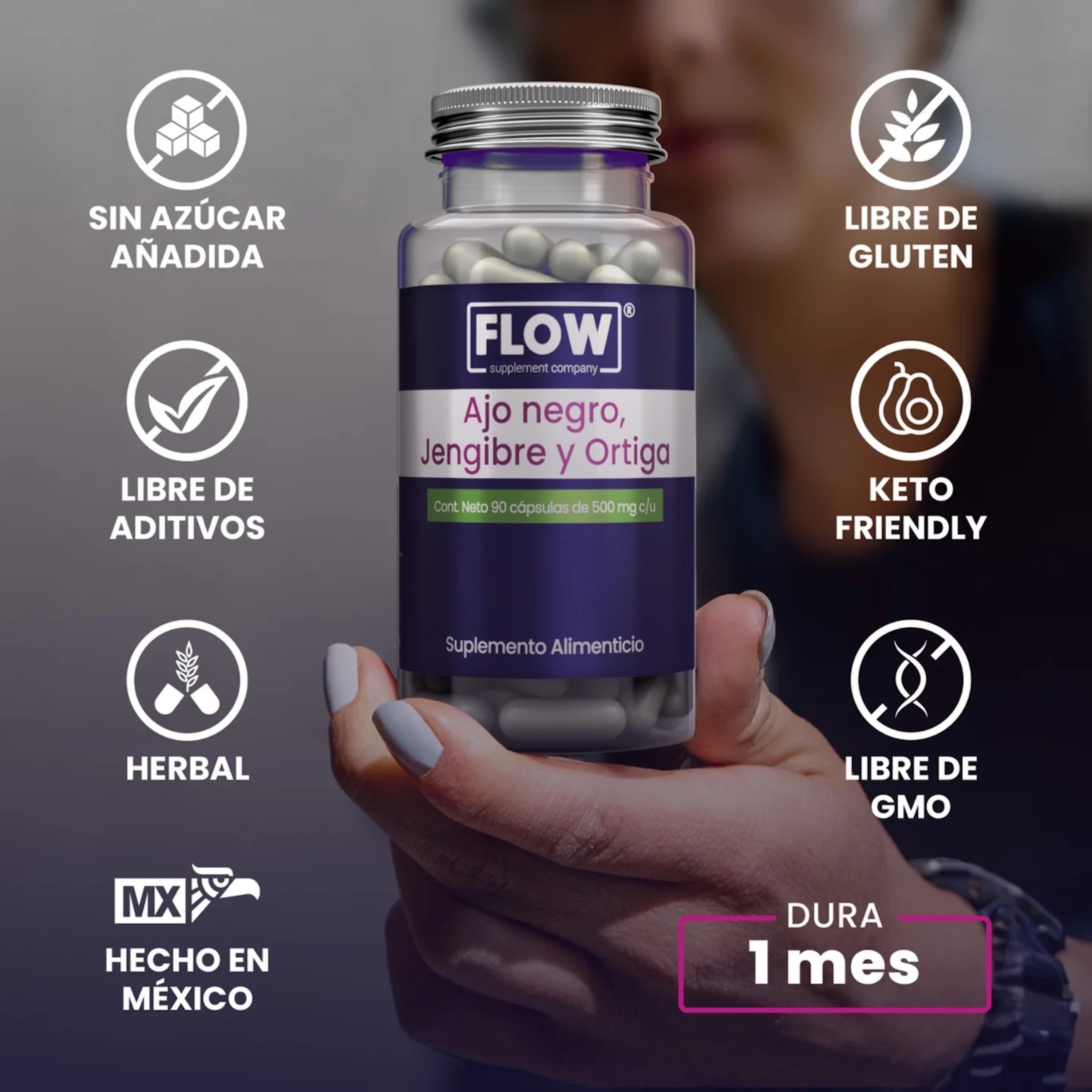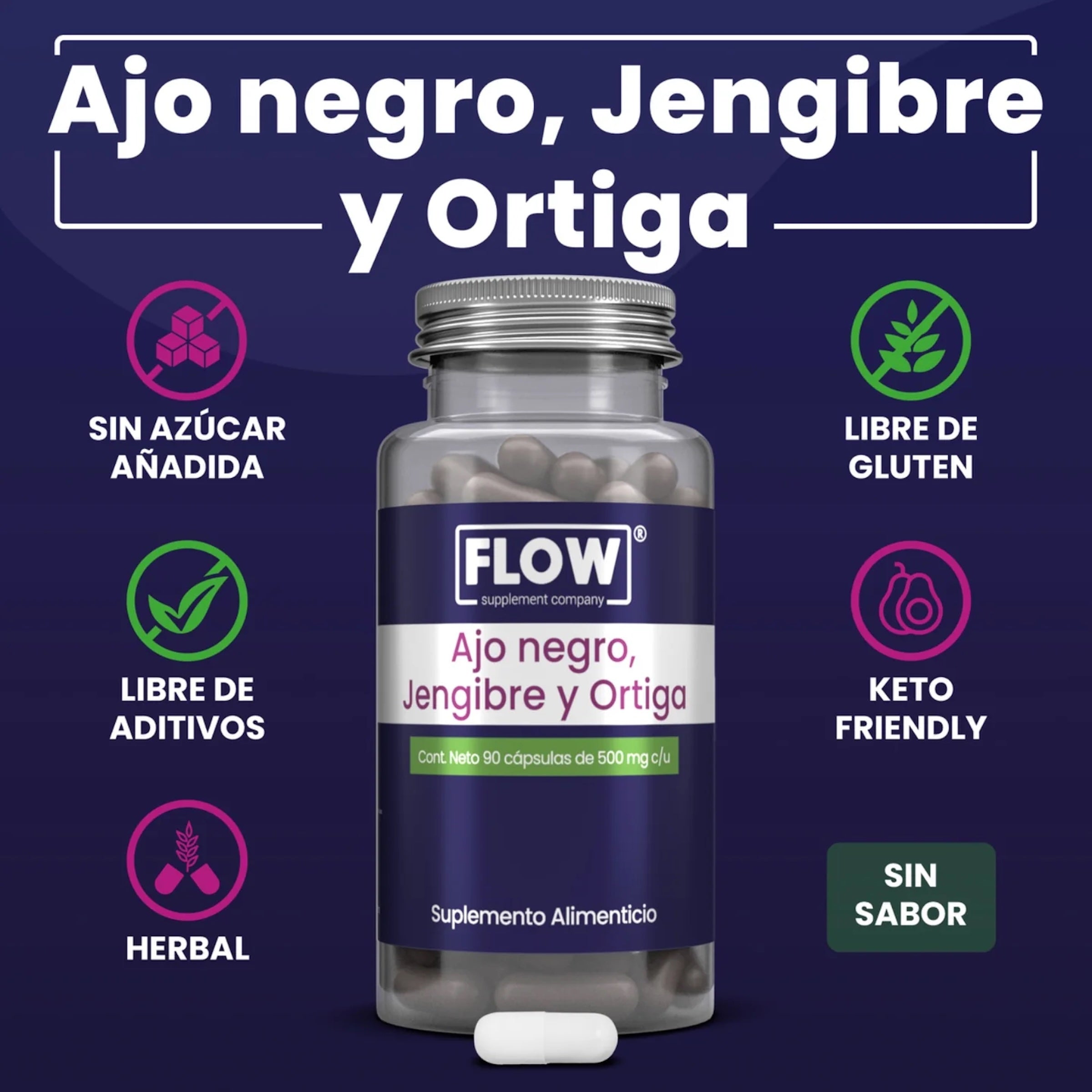 Ajo Negro Jengibre y Ortiga 90 cápsulas Flow