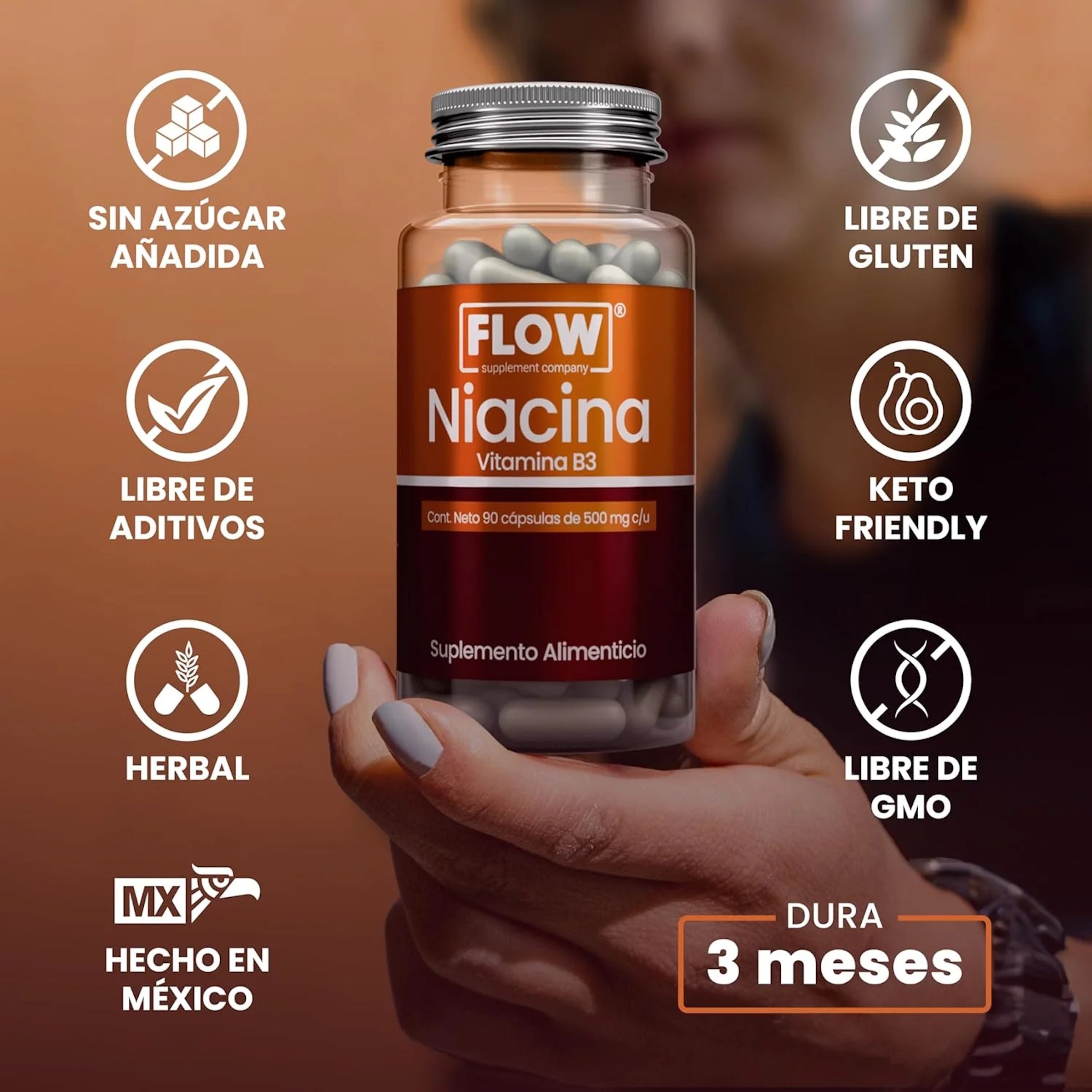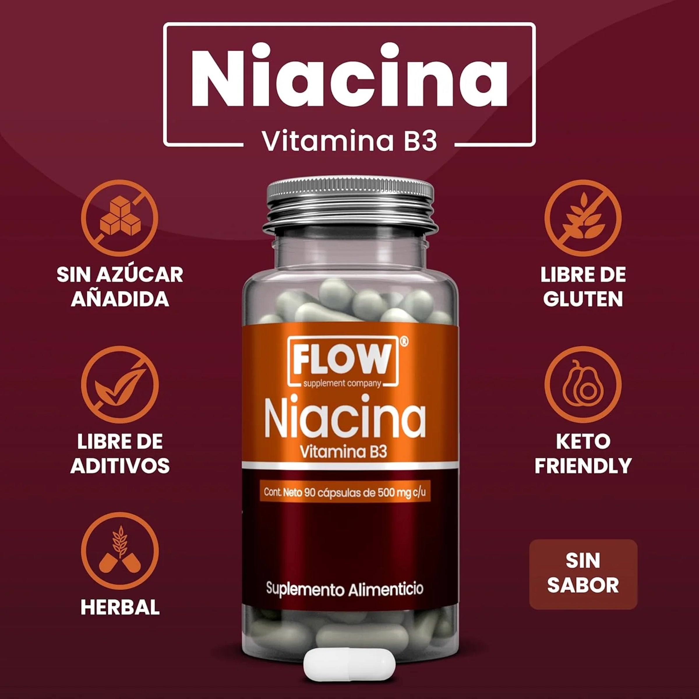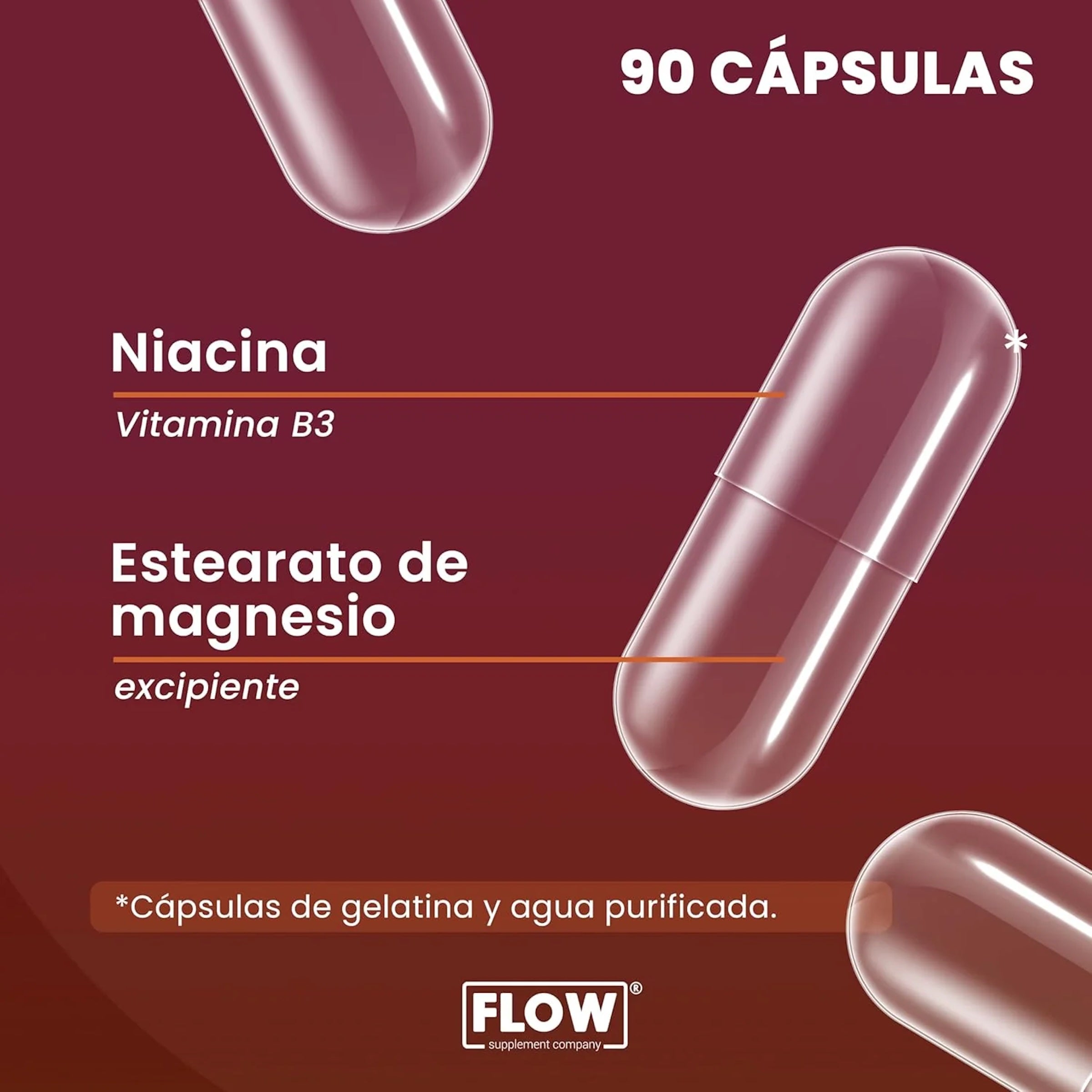 Niacina 90 cápsulas de 500 mg FLOW Vitamina B3 Niacinamida